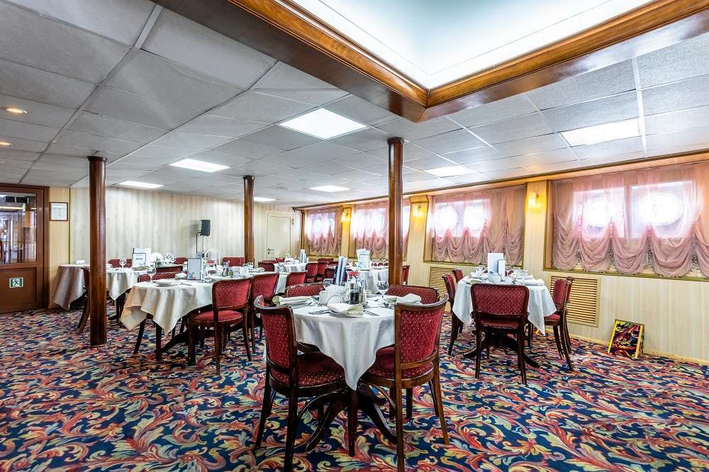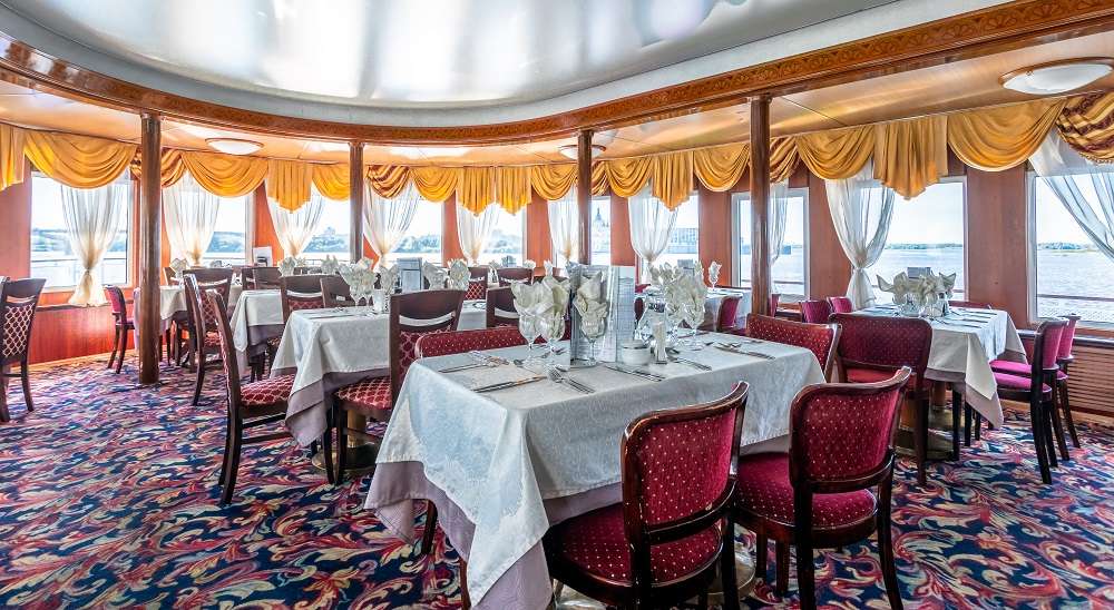 На всех теплоходах компании действует единая концепция питания. Если у вас имеются особые требования к питанию или противопоказания на определённые продукты, сообщите об этом нашему персоналу, и блюдо будет приготовлено индивидуально. По запросу в ресторане есть диетическое и безглютеновое меню. В обзорном лаундж-баре вам предложат напитки, десерты, холодные и горячие закуски.