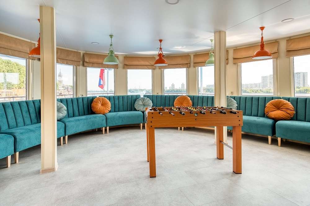 В обзорном лаундж-баре в определенные часы звучит живая музыка, а вечерами проводятся концертные программы. В мастер-салоне проводятся занятия спортом, йогой и мастер-классы. На теплоходе вас ждет не только разнообразный, но и полезный отдых. На палубе стоят тренажеры, на которых вы можете позаниматься в любое время.