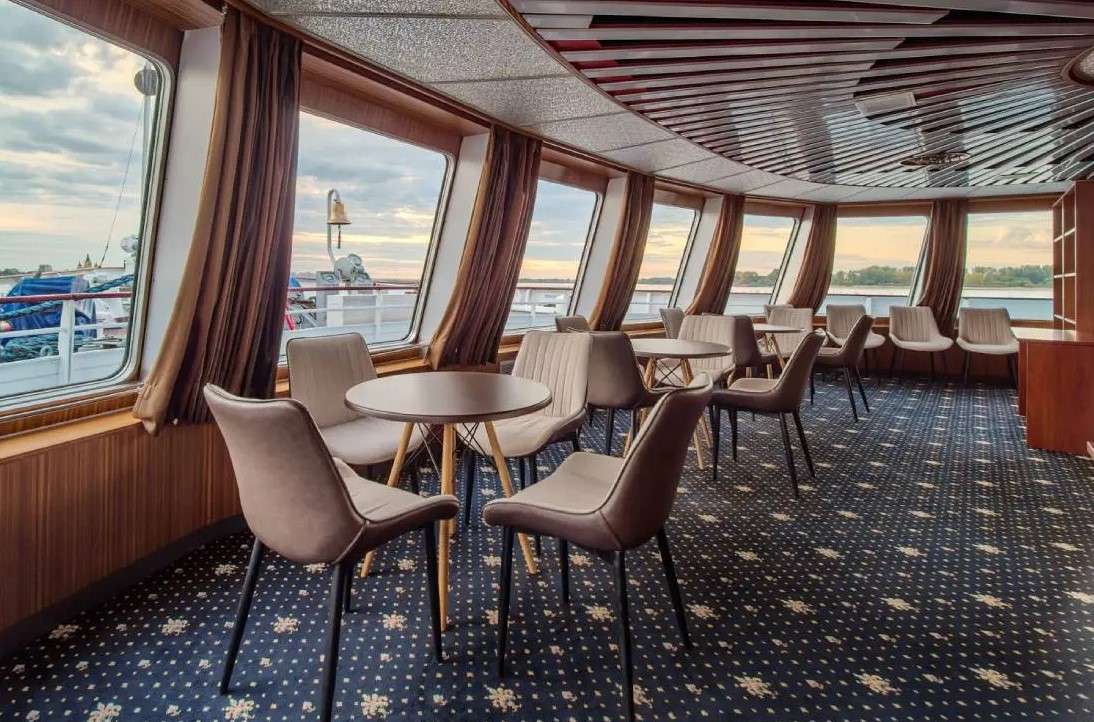 Вас ждет премиальный комфорт в каждой каюте: санузел с душевой, кондиционером, холодильником, сейфом, телевизором и феном, бутилированная вода с ежедневным пополнением, гигиенический набор, а также капсульные кофемашины и халаты в каютах класса «Люкс» и «Полулюкс». Помимо обширного каютного фонда, теплоход «Лев Толстой» предлагает большое количество уютных мест для отдыха. В атмосферных барах и гостеприимных ресторанах на теплоходе вас ждёт тёплый приём, расслабляющая обстановка и потрясающие панорамные виды.